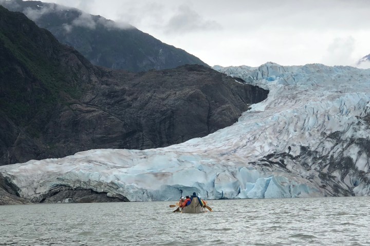 Paddling a Canoe in front of the Mendenhall Glacier