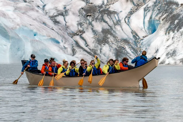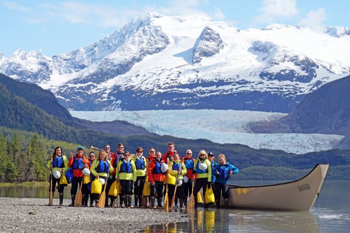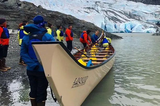 The journey is just as important as the destination and that?s why we access the area directly in front of the glacier via a canoe ride across Mendenhall Lake. As you cruise speedily across the lake you will pass icebergs and wildlife. You will experience the serenity of the Alaskan wilderness throughout the entire tour. Surrounded by steep cliffs, the thundering Nugget Falls, icebergs, and native wildlife; this voyage to the glacier is unforgettable.